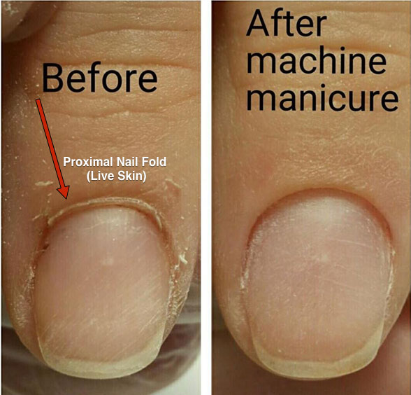 What these nail technicians are doing is removing the skin from the proximal nail fold and side walls.