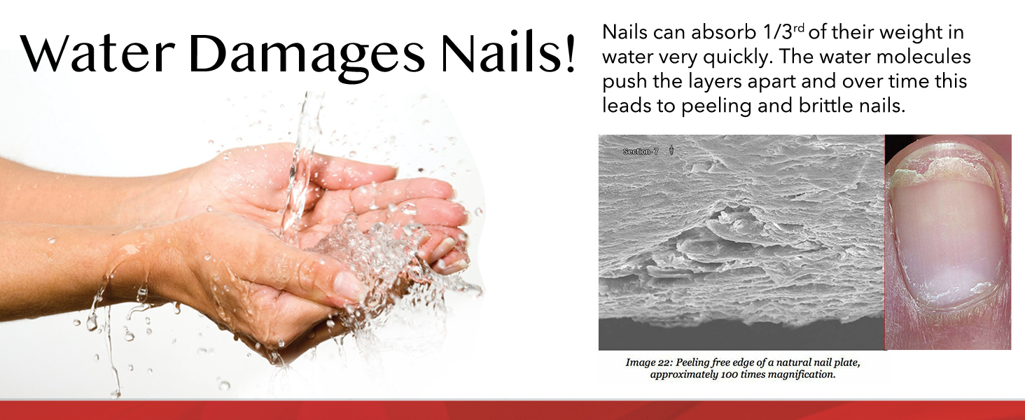 The quick answer is that nails absorb 1/3rd their weight in water. When water is absorbed through the underside of your nail plate, it breaks the polish-to-nail bond.