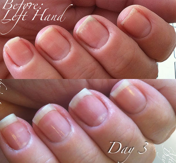 KIMBER: I’m at 3 hours without having to oil now! And when I do oil, the oil is starting to spread over my fingers instead of just being sucked in by my cuticles and sidewalls! Woohoo!!!! I can only imagine what day 7 will look like, and a few months from now? I have a feeling nails, cuticles and hands will all be different!